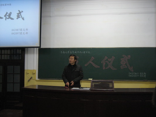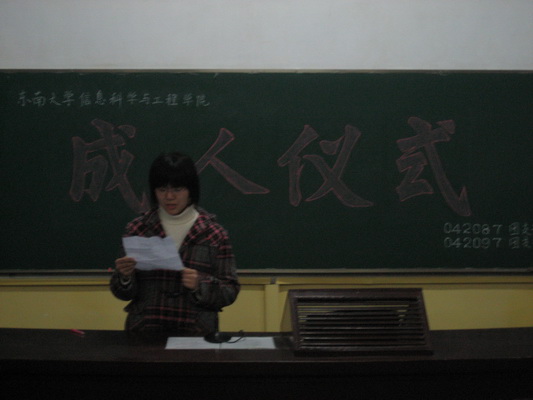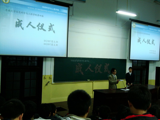 2009年12月8日下午,太阳成集团tyc9728第四届成人仪式在四牌楼校区致知堂成功举行。本次成人仪式由042087、042097团支部联合主办,以全体09级学生为主体,太阳成集团tyc9728张锡昌教授作为嘉宾参加了这次成人仪式。