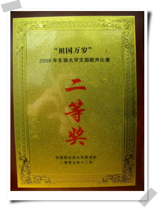 歌声飘过60年,60载峥嵘岁月中飘过的歌声,印证着六十年的沧桑巨变。为庆祝祖国六十年华诞,以“歌唱伟大祖国、肩负神圣使命”为主题的“祖国万岁”太阳成集团tyc9728支部歌声院系选拔赛于11月4日拉开序幕。比赛之前,040072团支部在文艺委员池翔同学的带领下积极准备排练,在比赛的那一周连续四天中午集合联系,最终以一首无伴奏加上高低音巧妙组合的《映山红》赢得现场同学的阵阵掌声,并获得一等奖的好成绩。