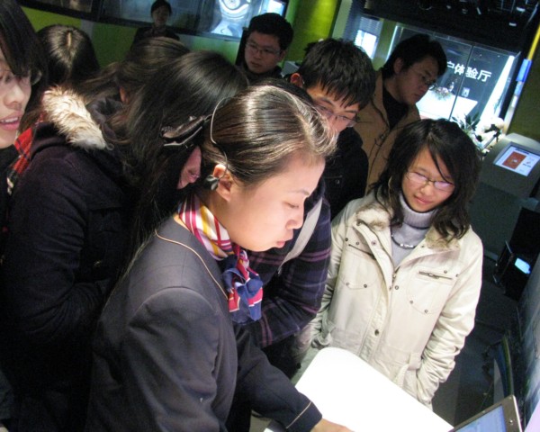 接下来,在移动公司人员的引导下同学们来到了集团客户体验厅。在这里,同学们亲身体验了丰富多彩的移动通信技术,包括手机门禁系统,手机一卡通系统,GPS导航,远程家居电器控制,市政移动应急指挥系统等等。在新奇的体验中,一方面支部成员惊叹移动通讯技术飞速发展,增加了对通信专业的认识和理解,另一方面了解所学专业的应用前景,所学基础理论知识的重要性,增强了对本专业的热爱。