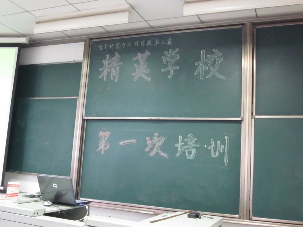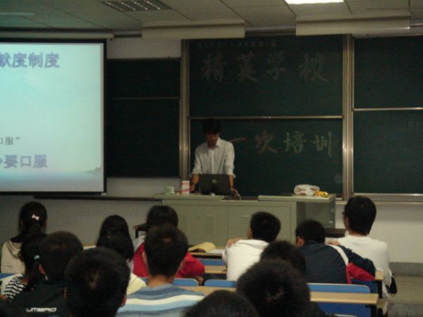 晚上七点半,精英学校第一次培训正式开始。活动的流程分为:毕业视频欣赏,班委经验介绍、经典团日活动、班级材料展示五个部分。