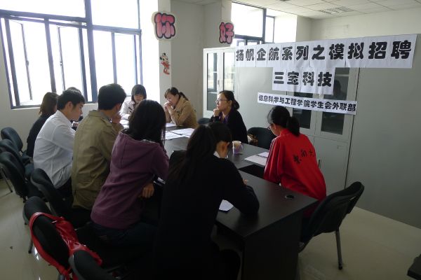 参加本活动的同学来自全校各个专业,他们均在之前的简历制作大赛中递交了自己的简历。经过筛选,21名同学进入了群体面试阶段,12名同学进入了单独面试阶段,更有7名表现优异的同学得到了三宝科技公司的模拟聘书。在面试过程中,面试官针对每个同学的不同情况提出了相应的问题,并在面试后与同学们深入交流,使每一位参加此次模拟招聘会的同学都受益良多,在真正踏上社会工作前为自己积累了宝贵的经验。另外值得一提的是,参加此次模拟招聘会的同学均可以得到走进名企——三宝科技、国电南瑞的机会,更加近距离的去接触工作岗位和社会现实。