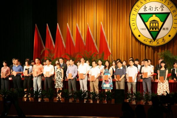 6月3上午,我校在九龙湖校区焦廷标馆举行隆重集会,庆祝建校109周年。我校杰出校友、南京科远自动化集团股份有限公司董事长刘国耀,杰出校友、中国电子科技集团公司第五十五研究所书记曾耘,江苏常发集团副董事长谈乃成,江苏金蝶软件有限公司总经理汪向国,江苏百纳集团董事长梅正芳,校领导郭广银、易红、左惟、浦跃朴、刘京南、刘波、郑家茂、沈炯、王保平和中国工程院孙伟、张耀明院士出席大会。来自北京、上海、天津、辽宁、浙江、安徽、云南、贵州、福建、广西、西安、成都、济南、广州、郑州、马鞍山、温州、泉州、深圳以及江苏省各市的校友代表,我校长江学者代表,机关各部、处、室主要负责人,各院(系)党政负责人,各民主党派负责人,教师代表,机关工作人员代表,学生代表等一千余人参加了庆典仪式。庆祝大会由校党委书记郭广银主持。