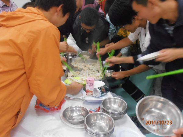 10月23日,信息学院2011级全体新生及学办老师、院学生会干部齐聚桃园食堂二楼,共同参与了2011级迎新饺子宴,活动在热烈的气氛中持续了约三个小时后圆满结束。