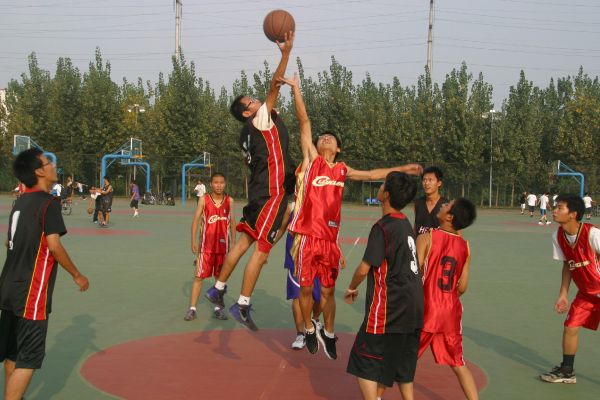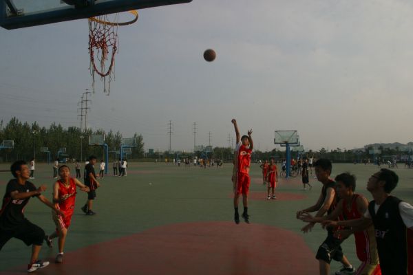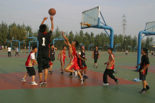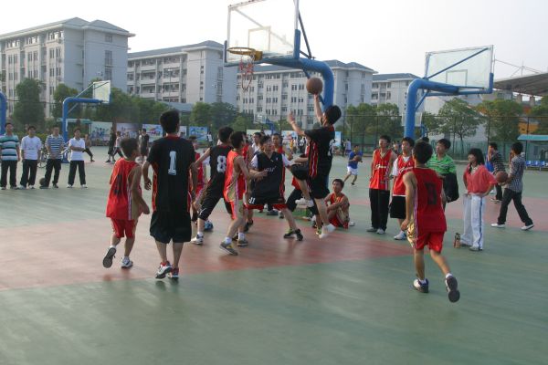 球员在场上你争我夺,助攻、抢断、投篮,动作潇洒,精彩纷呈;各班学生都来给自己的队员加油,此起彼伏的喝彩声、鼓掌声让运动员的热情更加高涨;期间还有女生选手出场环节,巾帼不让须眉。各班队员在赛场上挥洒汗水,拉拉队在赛场外加油助威,齐心协力,众志成城!面对成功的无比喜悦、面对失败时的彼此的理解和鼓励,让篮球场上不仅充满了斗志,更氤氲了一份温情。