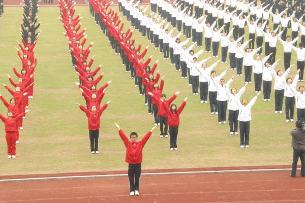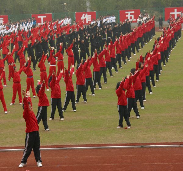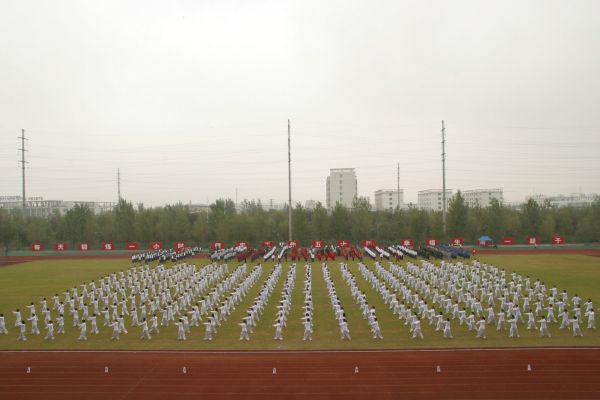 分列式之后是太极拳表演,学校多个院系的10级本科生代表组成了太极拳表演队,其中信息学院2010级本科生200名。太极拳的神韵体现了中国体育与文化结合的精髓,一个多月的清晨早起锻炼,铸就了他们中正安舒、轻灵圆活、松柔慢匀、开合有序、刚柔相济的表演,行云流水,连绵不断。