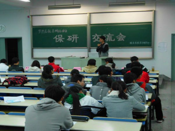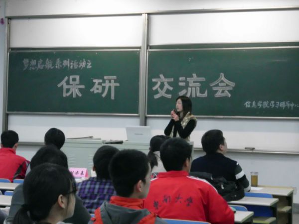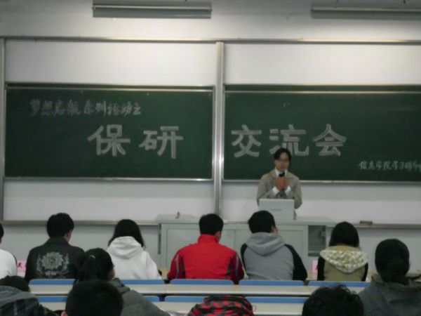 接下来,在经验交流环节中,大四的五位学长学姐分别从自身经历出发,向大家阐述了如何准确定位正确选择、如何为保研做准备、学生工作以及其他事务对保研的帮助,如何平衡学生工作与学习等问题,并且对保研加分条例进行了深入分析,提供了保研方面的很多资料,让现场同学在聆听他人成功案例的同时对自身的情况有了进一步认知。