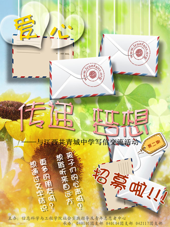 接下来的活动可以继续开展,发动更多的同学来参与,这边的孩子需要我们这些志愿者带给他们更多的知识和新鲜事。马上要到年尾了,我的提议是在年末的时候集体给孩子们寄明信片,最好是有东大照片的那种,让孩子们看看外面的世界是怎么样的,大学里的生活是怎么样的。明年是东大110周年校庆,如果这个写信活动进展顺利的话,也可以组织几个优秀的孩子去南京游玩一下,参观一下东大,参观一下南京。