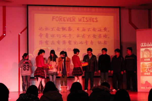 晚会分为打造宿舍特色、构建班级文化、铸造年级精神三个板块,每个板块以三行情诗开篇,通过视频以及照片的回顾,展现了同学们一个多学期以来的各种收获。本次活动还开创了人人墙,让各位同学参与现场互动活动。
