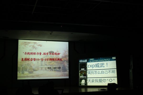 作为信息学院的新生力量,我们11级学生共创了我们大无线年级精神的内涵:团结、勤奋、拼搏、奉献。最后,祁磊老师将团结奋进精神奖颁给了信息学院11级全体学生,肯定了大家一个学期来的共同努力。