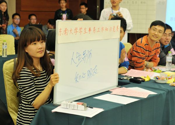 本着“用爱守护,用心耕耘,老师努力,学生受益”的思想,本次比赛以教务学务工作知识为主题,设置了必答题、抢答题、问答题等题型,各队员认真准备,细心答题,勤学博技,精英荟萃,分别决出了一、二、三等奖。最后由教务处雷威处长给学工部副部长王荣带领的信息、土木、材料、艺术代表队颁发一等奖,获奖代表祁磊老师发表感言,表示参与竞赛的队伍群英荟萃,能在两年流动助教生涯结束前参与到这样一个学生线教务线老师同堂竞技共同学习的活动是很难忘的美好体验。