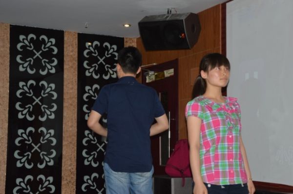 唱完情歌,我们进入了“默契对对碰”环节,先上场的是一对“夫妻档”,果然情侣之间的默契程度很高啊,默契率远高“基友档”30个百分点。场上的人各显“神姿”,场下的人自是笑的不亦乐乎。爆笑过后,我们进行了一个略有难度的游戏,叫做“动物园,果园,菜园”,这些都是很平常的东西,但玩起来的时候大家却囿于词汇量匮乏。整个游戏紧张而充满未知的笑料,所以即使败下来,大家也会觉得很开心。