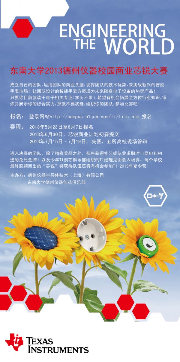 进入决赛的团队,除了精彩奖品之外,都将获得实习或毕业求职时TI网申和初选的免死金牌!以及今年TI创芯俱乐部组织的TI经理见面会入场券。每个学校最终脱颖而出的“芯锐”奖获得队伍还将有机会参加TI 2013年夏令营!