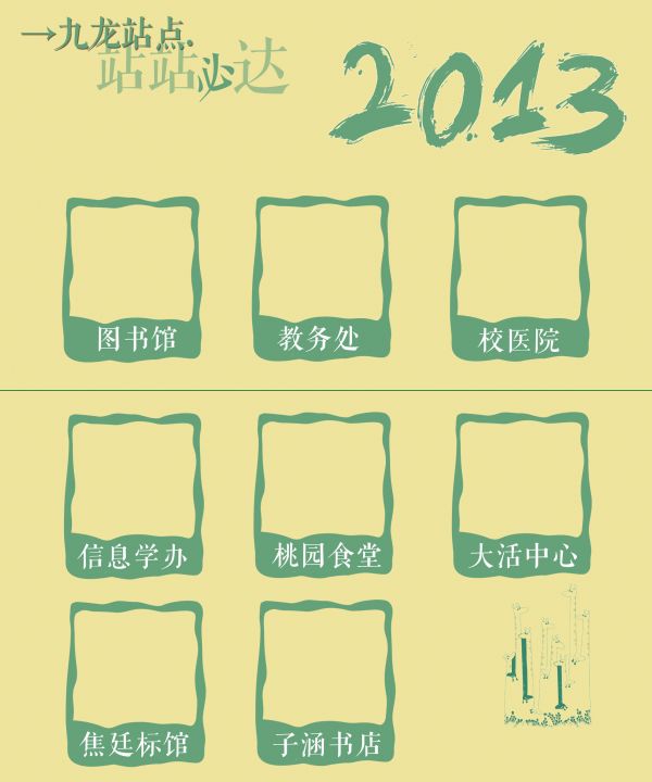 不用担心,8月24日,由信息学院学生会生活部主办的“九龙站点,站站必达”迎新活动将带你们游遍校园。带着校园地图和校园护照游遍信息学办、桃园食堂、校医院、图书馆、金智楼、焦廷标馆、大学生活动中心、子涵书店八处,每到一处找到我们的工作人员在护照上盖上章。集齐所有的章就有礼品赠送,更有机会参与终极大奖的抽取。