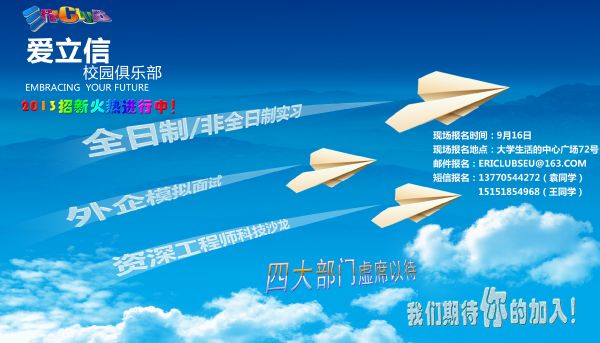 更多资讯尽请联络我们,请关注我们的现场招新!