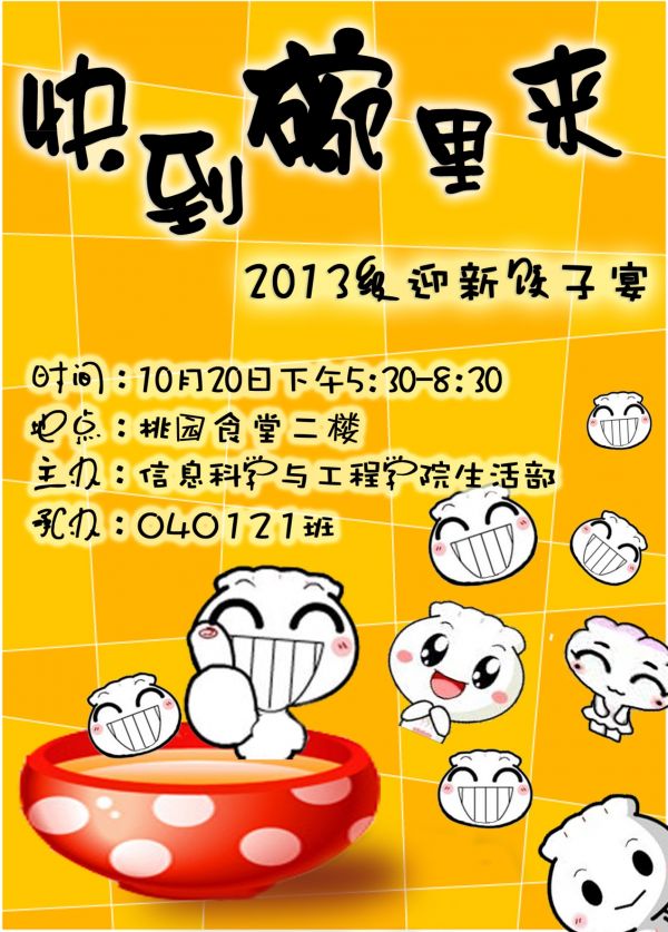 2013迎新饺子宴将于10月20日(本周日)下午5:30隆重来袭了!