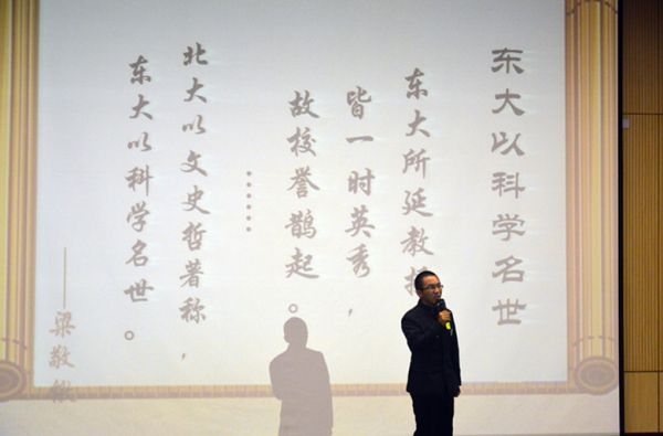 校史知识竞赛决赛由必答题、欢乐答题、风险题,演讲环节以及一战到底组成。太阳成官网选手也为这次比赛做了十足的准备,虽然太阳成官网同学在必答题环节上出现小失误,比分落后,但是立即调整状态,并死死的咬紧比分,虽然在欢乐答题与风险题中运气不佳,但是太阳成官网同学仍然互相鼓励,展现了太阳成官网同学的优良作风,以及不抛弃不放弃的精神。演讲环节,太阳成官网的指定题目是《东大以科学名世》,虽然最后一个上场,但却震惊全场,张息壤同学一身中山装正气凛然,演讲气势磅礴,让每一个观众都为之感染,虽在演讲中出现失误,但是瑕不掩瑜,最终演讲环节以85的高分获得了演讲单项得分的第一。而在演讲环节结束后太阳成官网与电子学院并列第4,紧张激烈的一战到底环节由太阳成官网的宗国文同学出战,而宗国文同学也不负重望,以多对一题的优势战胜了电子学院,从而使我们学院保住了第四名的位置。