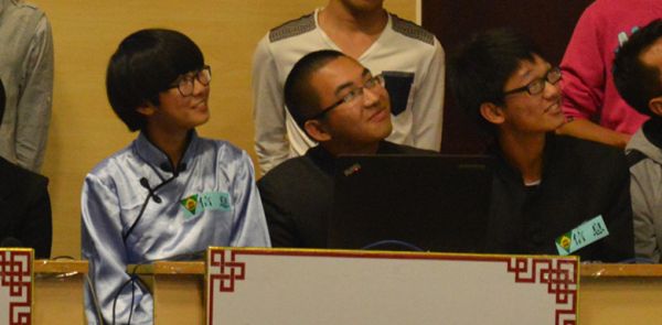 出战本次校史知识竞赛决赛有队员宗国文,覃惠祺,张息壤,替补队员,还有一直参与幕后工作的,负责拍摄的郑言以及台下70名来自各班的啦啦队队员,并且在演讲环节中很好的配合了演讲。虽然最终结果我们惜败于三个学院,但是无论台上参赛的同学,或是台前台后默默支持协助的队员,还是台下同心协力为他们加油鼓劲的啦啦队队员,在本次竞赛中都表现出了水平,赛出了风采!