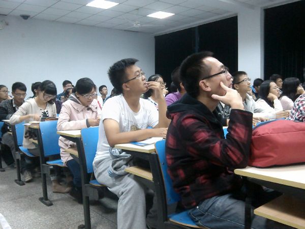 三位授课人在精心准备之后分别就各自的内容进行了一次成功的授课,讲台下的同学也听的异常认真。本次课程主要是从实际出发,在短短一节课之内交与同学视频图像处理技术。首先上场的11级的贺正然学长。他主讲AE、Vegas等软件,风格风趣,课堂活泼,极大的调动了学生的积极性。其次是12级的许文强学长,他主讲powerpoint,他从基础出发,从专业角度,用自己的切身体会讲给学生ppt的制作技巧,使听众受益良多。最后上场的是12级的许涵蔚学姐,她主讲Photoshop,主要也是从基础出发,教会同学们简单的ps常识与技巧。并以实例为主,从操作中教大家使用Photoshop,更加的实际受用。