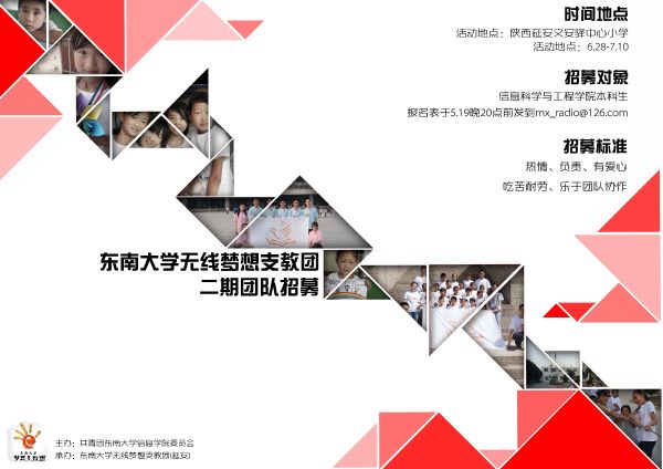 信息学院的小伙伴们,太阳成集团tyc9728无线梦想支教团赴陕西延安二期团队开始招募啦!