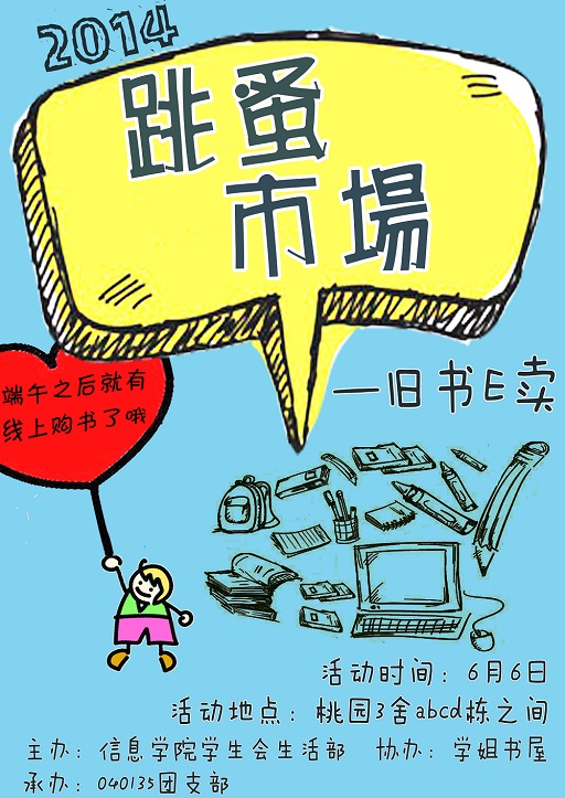旧书E卖活动让这些问题都不再是问题,信息学院学生会生活部联合学姐书屋,东大通为大家打造一个买卖旧书的平台。线上线下购书让大家轻松买卖书籍。线上购书端午后开始,购满一定金额还可获得线下购书的代金券哦,具体信息可关注信息学院学生会主页。线下购书6月6日10:30~13:30,桃园三舍围合等你来。