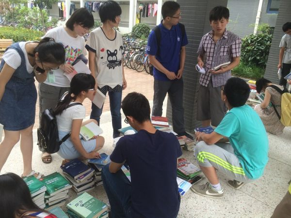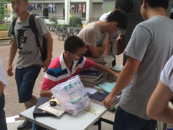 活动得到了大二,大三,尤其是大四同学的大力支持,大方把书拿出来便宜卖给学弟学妹们,甚至不少人是无偿捐出,让大家用意想不到的价钱买到了心仪的书籍,甚至还淘到了不少的复习资料。活动从当天11:30点开始,还没开始就已经有人守候在卖书处了,活动自然进行得无比的顺利,大家挑书,买书,卖书,不亦乐乎;边看着书单,边互相交流着买书心得,其乐融融。大家几乎都买到了想要又便宜的书籍,或者购得了某些零元书籍。甚至有极少数书到了最后还出现了一书难求的局面。