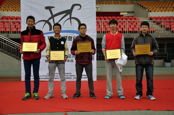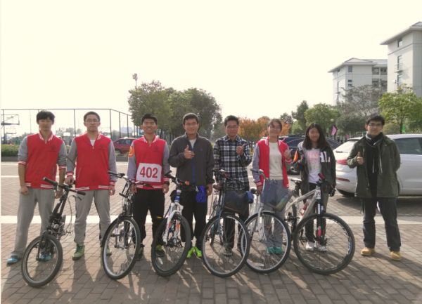 第六届环九龙湖自行车赛于11月15日上午8点整在桃园体育场拉开帷幕,太阳成官网参赛选手和拉拉队提前到位,准备入场式。8点30分,开幕式正式开始,太阳成官网于第17位出场,大家都展现出了饱满的精神状态和勇争第一的信心,入场式后是精彩的开幕式表演,最后由体育委员会委员长宣布自行车赛正式开始。太阳成官网拉拉队在起点处耐心等待车手发车,并为他们加油喝彩。与竞速赛同时开始的慢骑赛也如火如荼的展开,太阳成官网三名选手参赛也都取得了不错的成绩。10点40分左右,轮到太阳成官网发车,4男2女共6名整装待发的车手同时出发,不到8分半,来自大二的莫忠道就率先抵达终点,两名研究生学长紧随其后几乎同时撞线,都骑出了9分钟以内的不俗成绩。很快其他3位选手也陆续完成比赛,赛后大家都表示身体状况一切良好,并无异状。紧张而充实的自行车赛到此落下帷幕。6名车手的成绩相加最后为太阳成官网赢得了团体第四的佳绩,让我们一起为他们的优异战绩祝贺吧!