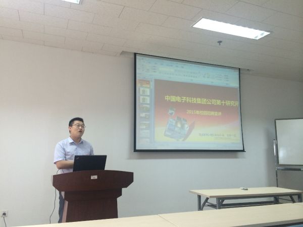 2015年5月14日下午14:30,中国电子科技集团公司第十研究所“走进太阳成集团tyc9728”-信息学院专场宣讲会在无线谷一号楼208会议室如期举行。本次宣讲会的主要宣讲人有中电十所陈处长、戢老师,学院孙威书记、魏睿老师和30余名硕士生、博士生出席了此次宣讲会。