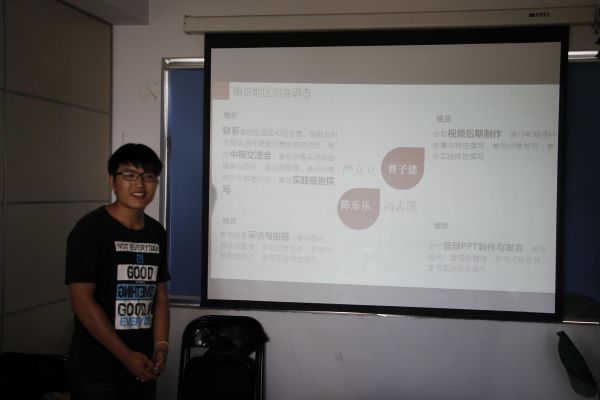 2015年9月9日中午十二点半,信息学院在学办二楼举行了2015年暑期社会实践申优答辩,总共三个团队参加了此次答辩,分别是无线梦想支教团,南京劳动者劳动保障和福利社会团队和南京地区创客考察队。答辩分为两个部分--学生社会实践成果展示和评委老师点评。