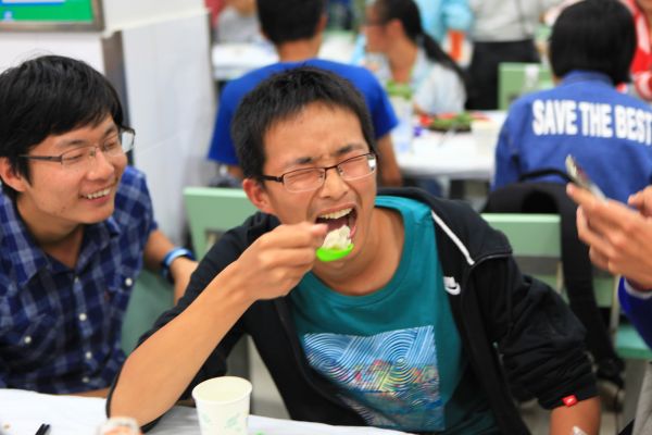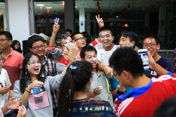 活动五点半开始,包饺子,吃饺子,再加上各种小游戏,15级新生或嬉戏打闹,或为了班级的荣誉团结一致,整个餐厅回荡着着同学们的欢笑声和欢呼声,洋溢着满满的快乐。游戏环节,同学们更是各显神通,但也是囧态百出。为了追求速度包出来的奇形怪状的饺子,吃下奇特馅料饺子而留下情态各异的表情包,更有喂许涵老师和曹凡主席吃饺子时候,两个人狼吞虎咽的状态,做蛋糕的时候控制不住的场面和各位尽力维护自己班级做蛋糕区域是一块净土的身影。别人做蛋糕靠的是技术,四系同学做蛋糕靠的就是创意和想象力了,还有那精彩的解说,让印象派,野兽派的蛋糕也变得容易接受了。