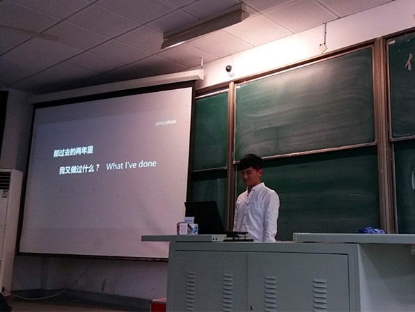 张婧媛同学首先登场,她的答辩视频以PS切入,创意十足,团支书、学生会宣传部部长、出色的手绘和PS技巧,多才多艺的她获得了同学的一致好评。俞安澜同学第二个上场,用prezi展示的她是学术达人、是体育健将、是啦啦操队担当。接下来,安宁伟同学以一个轻松愉快的视频介绍了自己,赢得满场喝彩。第四位候选人丁宁宁作为转系的同学,现在担任一班的团支书,在演讲中她出色的成绩无可挑剔。随后,黄梦宇同学上台展示,洪亮的声音,流利的展示得到了同学们的称赞。钟凯和邓峰杰同学以精彩生动的视频展示介绍了自己大二学年的故事。汪佳玮同学火柴人的创意视频,郑锐同学的采访视频都赢得了阵阵掌声。接下来张明辉同学和方钱安同学以精美的PPT展示和流畅的展示生动介绍了大学以来的学习和生活情况。第十二位候选人吴鹏精美的视频,丰富的展示给大家留下了深刻的印象。此后,周睿和吉超又相继进行了展示,踏实认真的他们始终以一个前行者的姿态书写自己的大学生活。最后一位候选人肖朝昆身着正装,气场十足,优秀的学习成绩,广泛的兴趣得到了同学们的掌声。