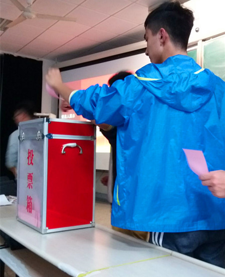 每一位候选人都准备充足,表现得十分出色。在候选人展示完毕后,各班的学生代表根据评选要求和候选人的表现进行了民主投票,并在工作人员的引导下有序上台,投下关键的一票。工作人员在大家的监督下,完成唱票,最终根据票数高低,评选出国奖、校奖同学。获得国家奖学金的是吴鹏、丁宁宁、黄梦宇、邓峰杰、吉超;获得校长奖学金的是俞安澜、郑锐、钟凯。