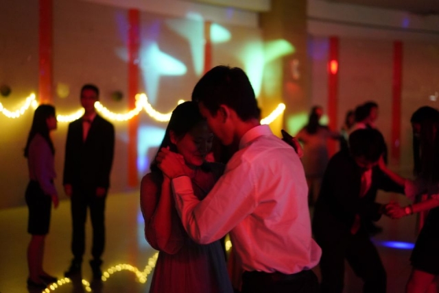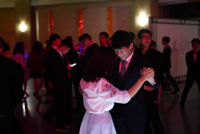 致辞结束后迎来了本次舞会的高潮,在完成两两配对以后,大家在王铠琪和吴小燚两位同学的华尔兹教学下逐步领会基本舞步,在舒缓的音乐下与舞伴共舞。