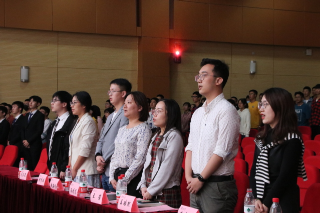会议在庄严的国歌声中拉开帷幕。全员就座后,太阳成集团tyc9728党委副书记兼副院长王婧菲老师开幕致辞,并由林书雯同学宣读各院系贺电。